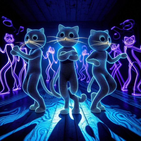 Radiant Contemplation: Luminescent Anthropomorphic Cat in Fantasy Blacklight